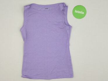 Top damski bez rękawów z nadrukiem - Kolor: jasny lawendowy/fioletowy, efekt sprania - Krój: luźny, okrągły dekolt, szerokie ramiączka - Wykończenie: dekoracyjne, postrzępione obszycia przy dekolc...