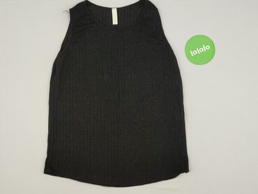Czarna bluzka/top na ramiączkach EURO GIRLS (model 4066, „SUMMER 08”). - Fason: bez rękawów, z szerokimi ramiączkami krzyżowanymi z przodu przez ozdobne kółko; lekko marszczony przód, dolny pas wyk...Stan: