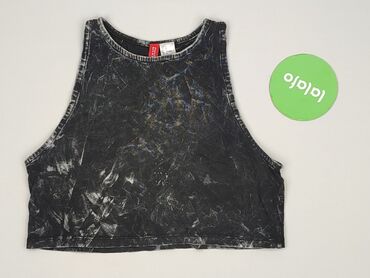 Czarny top House Brand, rozmiar M. - Krótki, dopasowany fason (crop top) - Krótkie rękawy - Żebrowana, elastyczna dzianina - Dekolt z niewielkim wcięciem przy szyi - Ozdobne sznurowania/wiązania z...