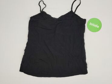 Czarny top damski H&M - Krój: na ramiączkach spaghetti, zabudowany dekolt z przodu, lekko wycięte boki; fason dopasowany. - Rozmiar z metki: M (EU/US/CA/MX M, 170/96A). - Materiał: tkanina elastyc...