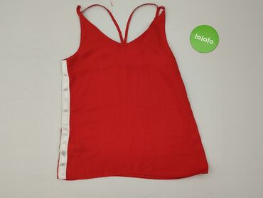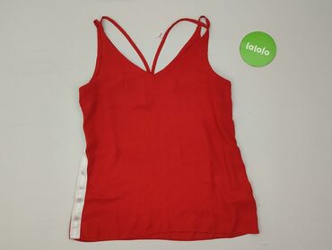 Czerwony top damski na ramiączkach - Krój: dopasowany, z delikatnie opadającym dekoltem z przodu; tył w kształcie litery V - Ramiączka: cienkie, nieregulowane - Długość: do bioder (klasyczny top) ...