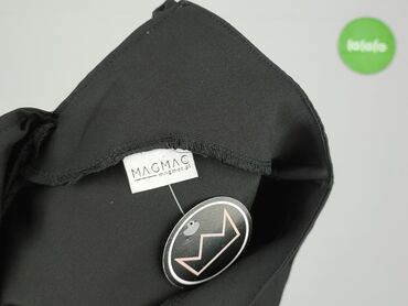 Czarna bluzka damska z długim rękawem, rozmiar L. Model o asymetrycznym dekolcie z ozdobnym marszczeniem i kółkiem przy ramieniu, wykończonym dwiema małymi perełkami. Gładka, elastyczna dzianina do...