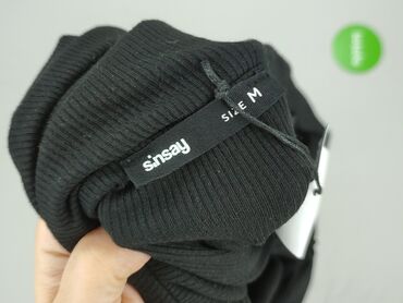 Czarny top bez rękawów dla kobiet - Marka: Sinsay - Rozmiar: M - Fason: dopasowany, bez rękawów - Dekolt: lekko falowany przy krawędzi - Materiał: prążkowana, elastyczna dzianina (miękka, sprężyst...