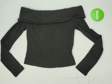 Czarny prążkowany top damski Sinsay, rozmiar S. - Fason: dopasowany, długi rękaw - Dekolt: prosty/łódkowy, szeroko odsłaniający ramiona - Materiał: 93% wiskoza, 7% elastan – miękki, elastyczny i p...