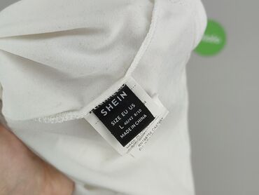 Biały top damski marki SHEIN w rozmiarze L. Wykonany z mieszanki 95% poliestru i 5% elastanu, co zapewnia komfort i elastyczność. Top posiada dekolt w kształcie litery V z przodu oraz ramiączka typ...