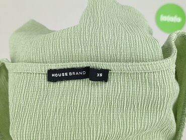 Lekki, wygodny top idealny do stylizacji letnich i casualowych; świetnie wygląda z wysokim stanem spodni lub spódnic. Subtelna faktura materiału dodaje charakteru, a marszczenie podkreśla linię dekoltu. Marka: House Brand. Rozmiar XS. Kolor pistacjowy.