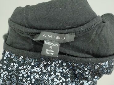 Top damski AMISU z cekinami - Marka: Amisu - Typ: top bez rękawów - Kolor: czarny - Ozdoby: gęsto naszyte cekiny w falujące, poziome pasy (srebrne/czarne), efektowny połysk - Krój: dopasowany, okr...