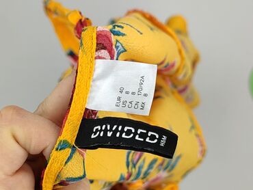 Top na ramiączkach H&M Divided – damski - Rozmiar: EUR 34 / XS - Krój: krótki top z falbaną u dołu, marszczenia w pasie i pod biustem - Ramiączka: regulowane - Wzór: kwiatowy, w odcieniach żółci, ...Stan: