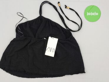 Czarny top na ramiączkach Zara - Krótki, dopasowany krój typu crop - Cienkie, podwójne ramiączka z tyłu złączone w centrum - Okrągły dekolt z przodu - Elastyczna dzianina bawełniana z dodatkiem st...