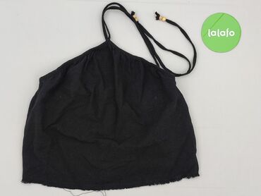Czarny top crop FB Sister, damski - Rozmiar: S (z metki) - Krój: krótki top na cienkich ramiączkach - Detale: marszczenie i regulowane wiązanie z przodu, falbanka przy dolnej krawędzi - Materiał: ...