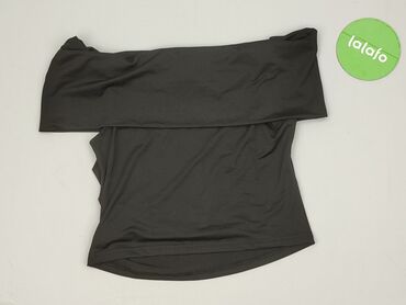 Czarny top damski Dazy – asymetryczny, z odkrytym jednym ramieniem i szeroką opaską/kołnierzem opadającym na dekolt (hiszpański krój na jedno ramię). - Marka: Dazy - Rozmiar z metki: S - Skład ma...