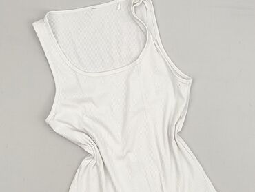 Biały, prążkowany top bez rękawów – damski - Fason: dopasowany, na szerokich ramiączkach, okrągły dekolt - Materiał: elastyczna, miękka dzianina prążkowana (komfortowa, dobrze dopasowuje się do sy...