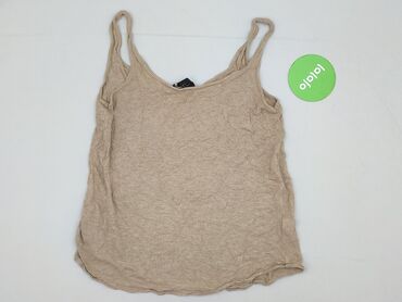 Top damski H&M na ramiączkach, prążkowany, krótki (crop). - Kolor: beżowy/mokka. - Rozmiar z metki: US M, EUR M, MX M, CN 170/96A. - Skład materiału (z metki): 63% poliester, 34% wiskoza, 3% weł...
