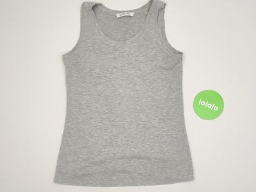 Top damski bez rękawów (tank top) - Kolor: grafitowy/szary - Krój: bokserka z wycięciem typu racerback - Rozmiar z metki: M - Materiał: 100% bawełna (metka ze składem widoczna na zdjęciu) - Tkanin...