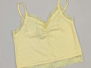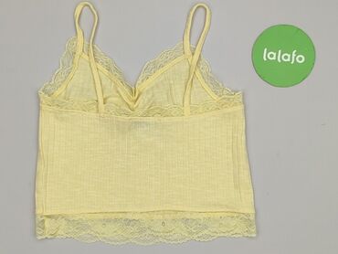 - Damski, żółty crop top z delikatnej prążkowanej dzianiny