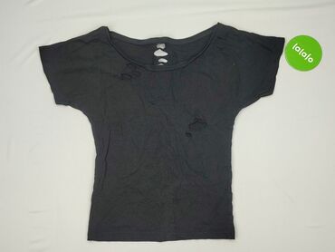 Czarny top damski Sinsay, rozmiar L - Krój: krótki top z krótkim rękawem - Dekolt: asymetryczny, z jednym ramiączkiem opadającym – efekt „off-shoulder” - Materiał: prążkowana, elastyczna dzianina ...