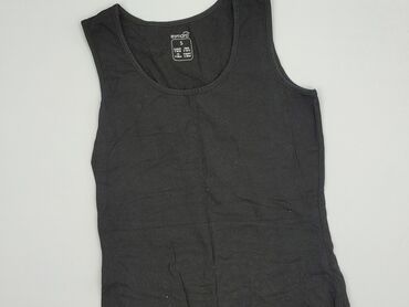 Czarna koszulka na ramiączkach (top) - Fason: obcisły, z dekoltem w kształcie litery V - Ramiączka: cienkie, regulowane - Długość: do bioder - Materiał: miękka, elastyczna dzianina (bawełna...Stan: