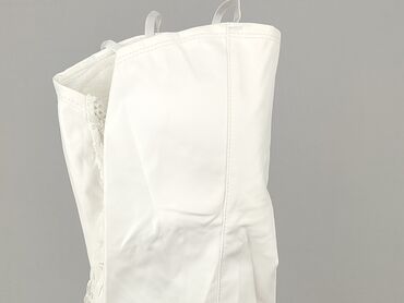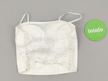 Biały top koronkowy na ramiączkach - Krótki, lekko prążkowany top z ażurowym wzorem w jodełkę - Ozdobna koronka wzdłuż dekoltu i ramiączek - Z przodu satynowa kokardka - Cienkie, podwójne ramiączk...