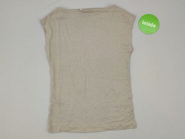 Damski top na ramiączkach w beżowym kolorze, wykonany z prążkowanego materiału. Posiada okrągły dekolt i jest w rozmiarze S. Idealny na co dzień, na lato lub jako element stylizacji warstwowej. Mat...