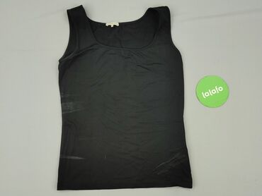 Czarna damska koszulka bez rękawów (top) - Krój: dopasowany, okrągły dekolt, ramiączka średniej szerokości - Kolor: czarny - Rozmiar z metki: S (EUR S, US S, CA P, CN 165/88A, MX CH) - Materiał: l...