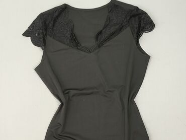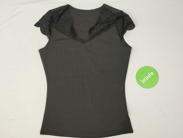 Czarny top bez rękawów dla kobiet - Rozmiar: M (z metki WOMEN M) - Kolor: czarny - Fason: dopasowany, bez rękawów, dekolt okrągły - Wykończenie: koronkowa lamówka przy dekolcie - Materiał: prążkow...