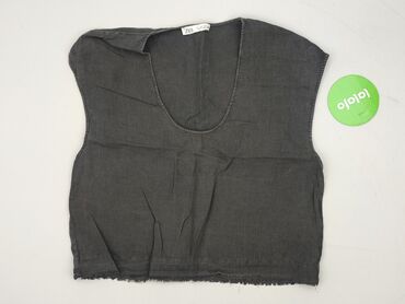 - Fason: krótki top bez rękawów, z szerokimi ramionami i głębszym, zaokrąglonym dekoltem