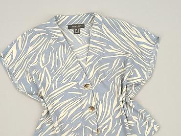 Top damski crop z wycięciem, Shasy, rozmiar S - Krój: krótki crop top, dopasowany, z krótkim rękawem - Dekolt: okrągły - Detal: dekoracyjne owalne wycięcie na piersi - Wzór: niebieski print w styl...