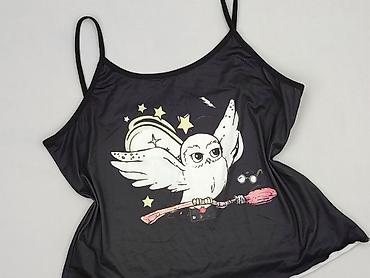 Top na ramiączkach damski - Kolor: czarny z nadrukiem muchomorów (czerwone kapelusze w białe kropki) - Rozmiar: S - Materiał: 100% poliester (metka na zdjęciu) - Cienka, lekka tkanina – szybko sch...Stan: