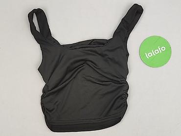Czarny top damski XS - Fason: krótki, dopasowany, na ramiączkach wiązanych na kokardy - Dekolt: łódkowy - Tkanina: prążkowana, elastyczna - Skład: 95% poliester, 5% elastan (metka na zdjęciu) - Ko...