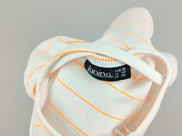 Biała bluzka bez rękawów Janina - Rozmiar z metki: 40 - Krój: lekko luźny, tank top - Dekolt: okrągły - Materiał: zwiewna tkanina, delikatnie półtransparentna - Detale: szeroki, pionowy pas ażurow...