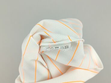- Wzór: drobne prążki + cienkie poziome paski w odcieniach pomarańczowym/łososiowym na białym tle