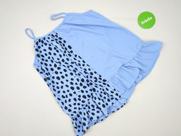 Jasnoniebieski top damski z białymi kropkami, idealny na letnie dni. Posiada ramiączka z wiązaniem na plecach, które dodają mu unikalnego charakteru. Lekki materiał zapewnia komfort noszenia i swob...Stan: