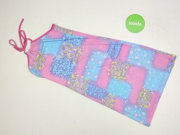 Top damski w żywe, wielobarwne wzory, idealny do letnich stylizacji. Charakteryzuje się luźnym krojem i wiązaniem na szyi, co nadaje mu lekkości. Intensywne barwy, takie jak różowy, zielony i fiole...Stan: