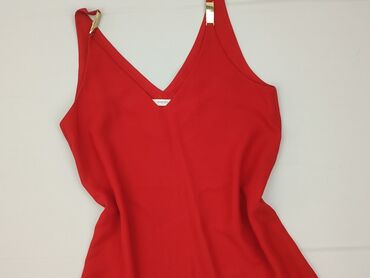 Czerwony top damski na cienkich ramiączkach - Krój: luźny, lekko opływowy, z delikatnie zaokrąglonym dołem - Dekolt: łagodny, lekko zaokrąglony z przodu i z tyłu - Ramiączka: podwójne, wąskie - Ma...