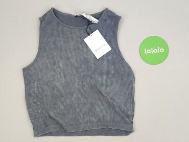 Top bez rękawów Mohito, rozmiar M. - Krój: luźny, z szerszymi ramionami i okrągłym dekoltem - Kolor/wzór: drobne pionowe prążki w odcieniach szarości/czerni - Materiał: 99% poliester, 1% elastan –...