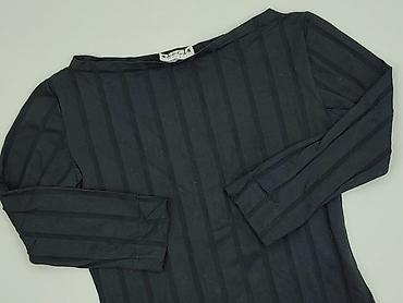 Damski sweter z długim rękawem w kolorze czarnym. - Fason: klasyczny, prosta linia - Dekolt: okrągły - Rękawy: długie - Wzór/struktura: górna część (przód, tył i rękawy) z poziomymi, delikatnie po...
