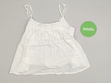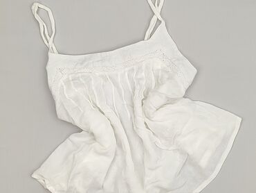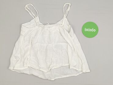 Ażurowy top na ramiączkach, biały, dziergany. - Krój: krótki top/crop z dekoltem V z przodu, lekko zaokrąglonym z tyłu. - Przód z dekoracyjnym sznurowaniem na środku (bawełniany pasek do regulacji...