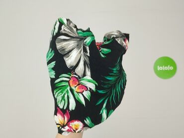 - Wzór: tropikalny print na czarnym tle – liście, kwiaty, motyle w żywych kolorach