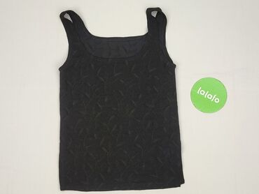 Czarny top bez rękawów dla kobiet - Krój: prosty, lekko pudełkowy; okrągły dekolt - Zapięcie: z tyłu na pętelkę i guzik (małe rozcięcie pod szyją) - Materiał: 100% poliester (metka na zdjęciu) - R...