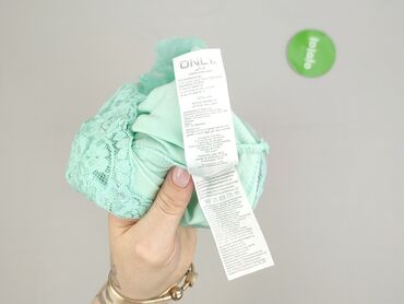 Bluzka damska ONLY – zielona, ażurowa - Marka: ONLY - Fason: krótka bluzka z falbanami, lekko rozszerzana u dołu; rękawy bufiaste do łokcia z gumką - Dekolt: V-neck z przodu, łódkowy z tyłu - Deta...
