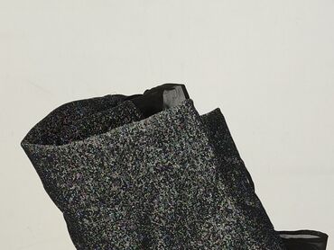 - Wygląd: czarny, drobno połyskujący materiał z efektem brokatu/metalicznym, dół wykończony półprzezroczystą, czarną lamówką