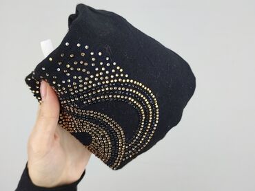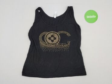 Damska koszulka bez rękawów (top) w kolorze czarnym. - Fason: bezrękawnik z okrągłym dekoltem - Przód ozdobiony połyskującymi aplikacjami/kryształkami i drobnymi zakładkami, które dodają lekkości ...Stan: