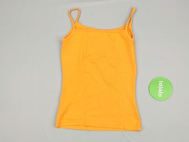 Żółty top na ramiączkach – damski - Krój: klasyczny, dopasowany, z szerokimi ramiączkami i okrągłym dekoltem - Materiał: miękka, cienka dzianina bawełniana z dodatkiem elastycznych włókien (rozcią...Stan:
