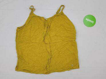 Bluzka bez rękawów – musztardowa - Krój: prosty, luźny, bez zapięcia - Dekolt: okrągły - Kolor: musztardowy/jasny żółty z delikatną, lekko melanżową fakturą tkaniny - Rozmiar z metki: L - Materiał...