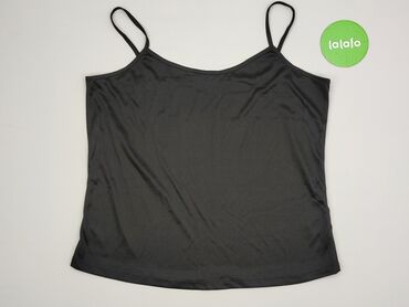 Czarna damska koszulka na ramiączkach (tank top) - Krój: prosty, bez rękawów, szerokie ramiączka, okrągły dekolt z przodu i z tyłu - Rozmiar z metki: XXL - Materiał: 95% poliester, 5% elastan – mi...