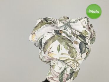 - Kolor/wzór: biała baza z botanicznym nadrukiem liści w odcieniach zieleni, beżu i fioletu