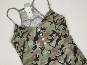 Top damski na ramiączkach Bik Bok - Rozmiar: XS (z metki) - Krój: bokserka, plecy typu racerback - Wzór: klasyczny kamuflaż w odcieniach zieleni, beżu, czerni i brązu - Materiał: 100% poliester (l...