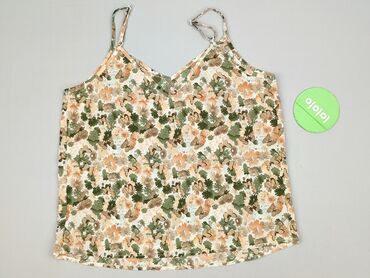 Top damski SHEIN na ramiączkach - Kolor: jasny krem/ecru z kwiatowym nadrukiem w odcieniach zieleni, różu i delikatnego niebieskiego - Dekolt w kształcie litery V z kontrastową, czarną lamówką; cza...