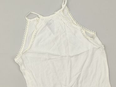 Biały top wiązany na szyi SHEIN - Rozmiar: XS (EU 34, US 2) - Krój: halter, dekolt w kształcie trójkątnych miseczek; wiązanie na szyi i z przodu/na plecach, co pozwala dopasować obwód - Materiał: ...