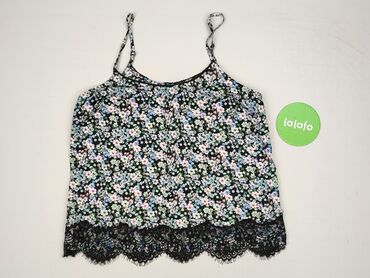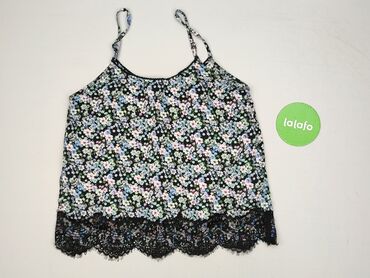 Top na ramiączkach Sinsay – damski - Rozmiar: M (z metki) - Krój: lekko luźny, dekolt w kształcie litery V - Ramiączka: cienkie, regulowane - Wzór: czarny w drobne kwiaty (odcienie bieli, różu i z...
